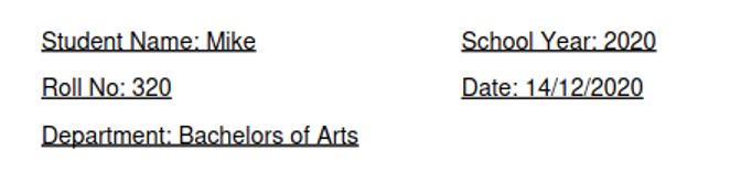 drawCell(table, newPara(c, "Roll No: 320", studentInfoStyle), cellStyles["left"])