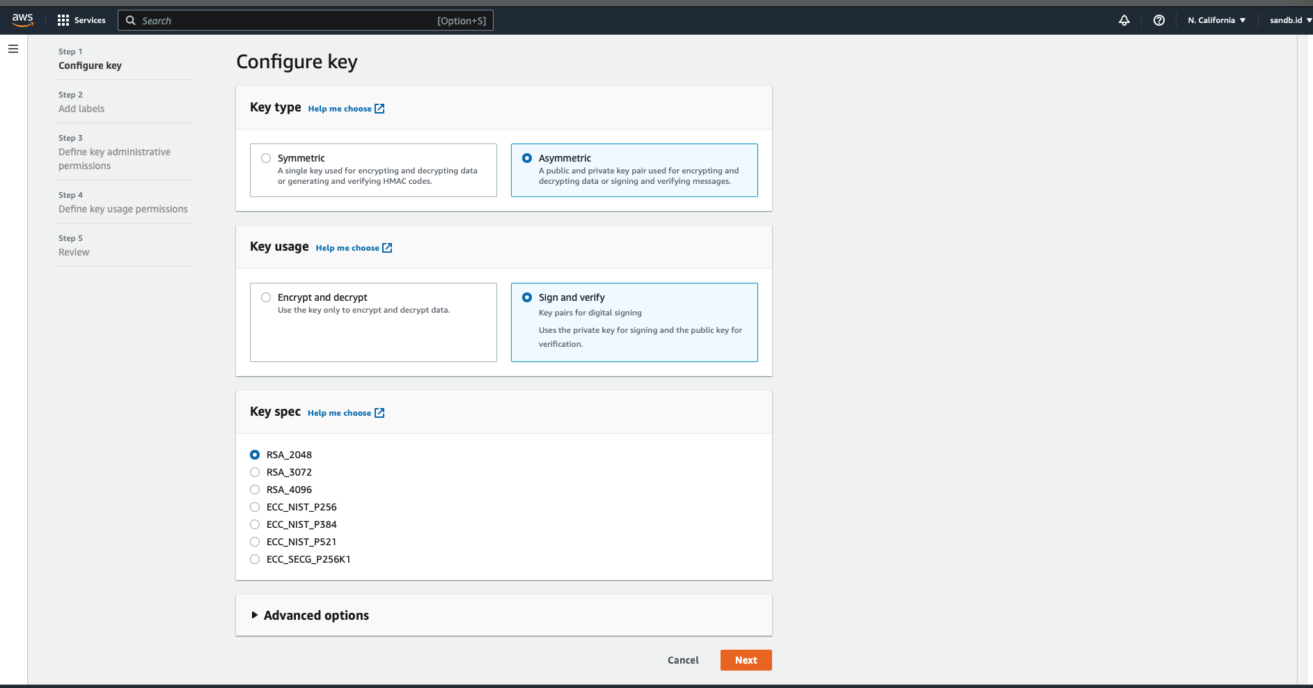 Generate AWS KMS Asymmetric Key, with this we will get the public key associated with the key.